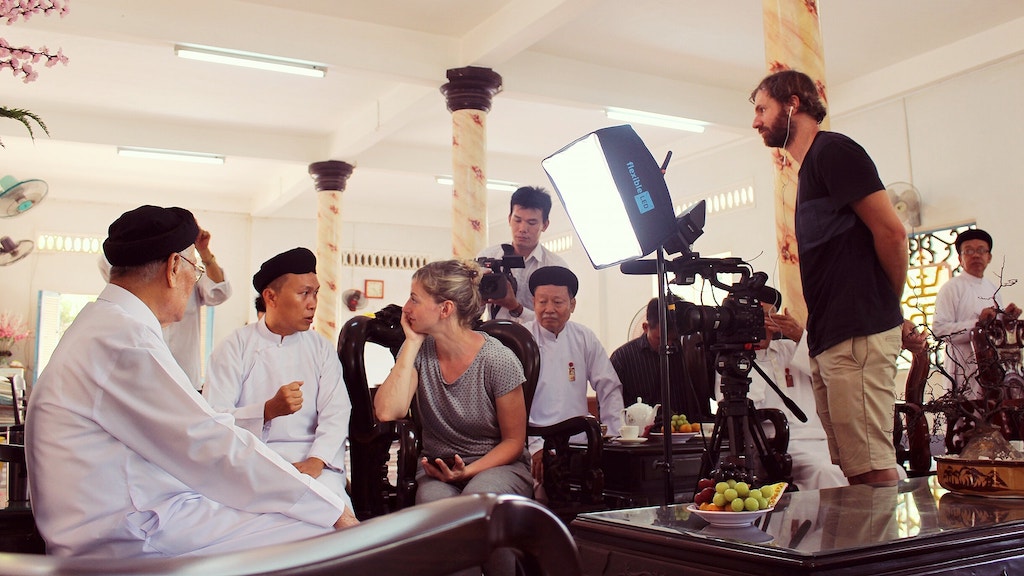 Interview and filming at Cao Dai temple, Tay Ninh. Interview with Cardinal Thượng tám Thanh. We were accommodated very well by the people at the temple.
