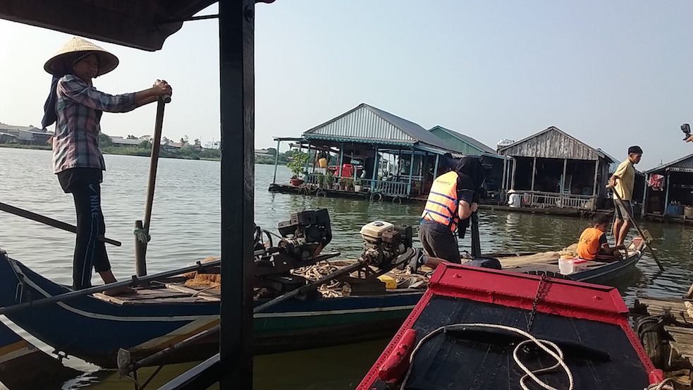 Filming at Chau Doc, An Giang (Mekong Delta) at floating village about life of a fishing family, how do they use the net to catch the fishes from their boat.
