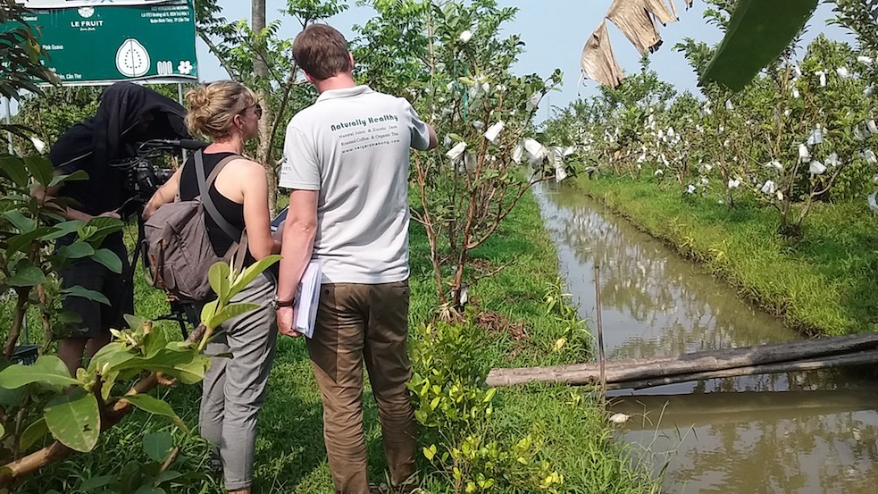 Filming at one of the orchards at Tan Thoi commune, Phong Dien district, Can Tho province which cooperate with Les Vergers du Mekong – owner of the brand ‘Le fruit farm fresh’ which products are usually found at juice section in supermarkets in Vietnam.